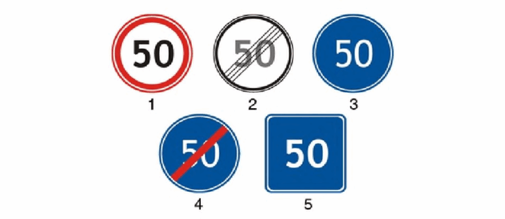 6.Նշաններից ո՞րն է ցույց տալիս 50 կմ/ժ առավելագույն արագության սահմանափակման գոտու վերջը: