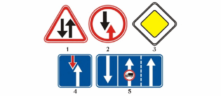 11.Նշաններից ո՞րն է նախազգուշացնում հանդիպակաց երթևեկությամբ ճանապարհի սկզբին մոտենալու մասին։