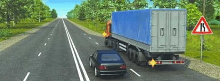 1.Ճանապարհային նշանների, գծանշման և բաժանարար գոտու բացակայության դեպքում վարորդները երկկողմ երթևեկությամբ ճանապարհների երթևեկելի մասում գտնվող ճանապարհային կառույցների տարրերը պետք է շրջանցեն`